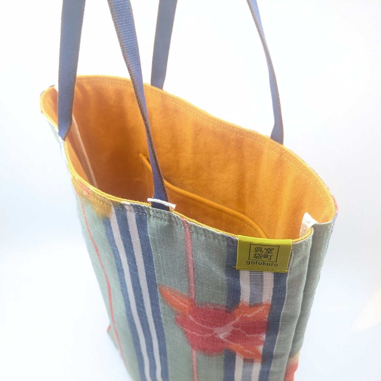 室町呉袋のマチ付きトートバッグ大サイズです。内ポケット1つ付き。
