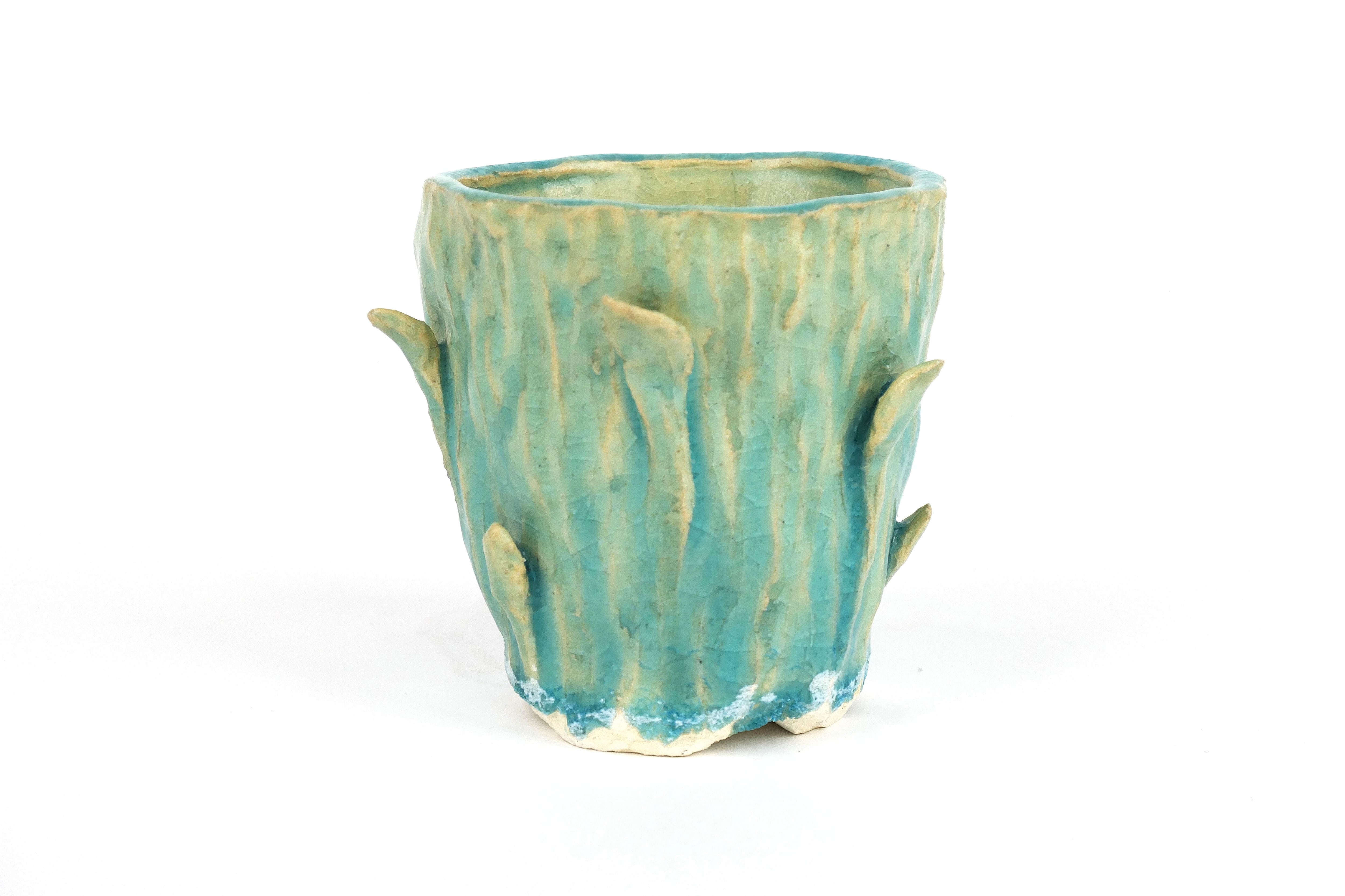 ・商品は作家が植物鉢としてオリジナルに制作した釉薬を施した陶素材の作品です。