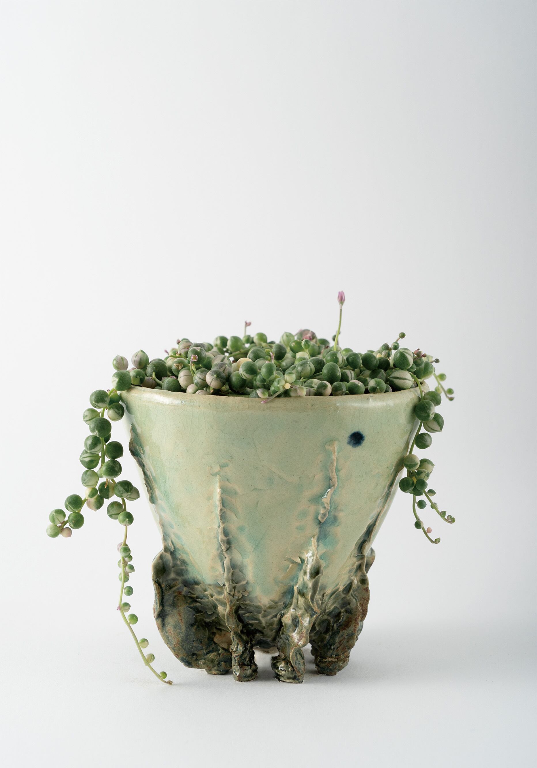 ・商品は作家が植物鉢としてオリジナルに制作した釉薬を施した陶素材の作品です。
