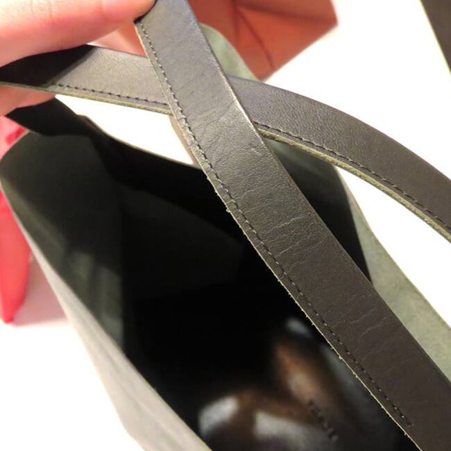 持ち手は本体と同様の薄い革で作られており、持ちやすいようにあえてクロスした形状になっています。