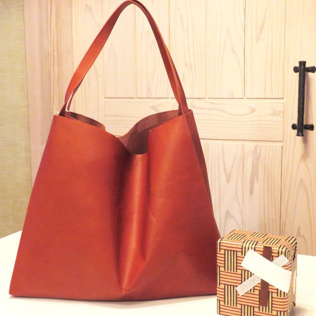 手袋を作るときに使われる、薄くすかれた牛革で作られたバッグ。