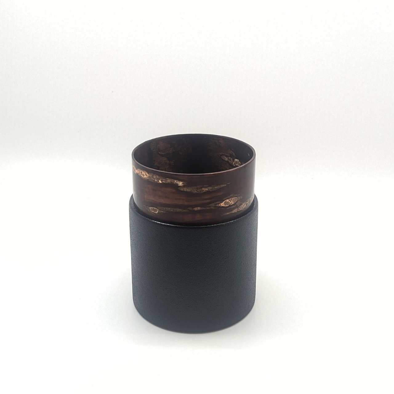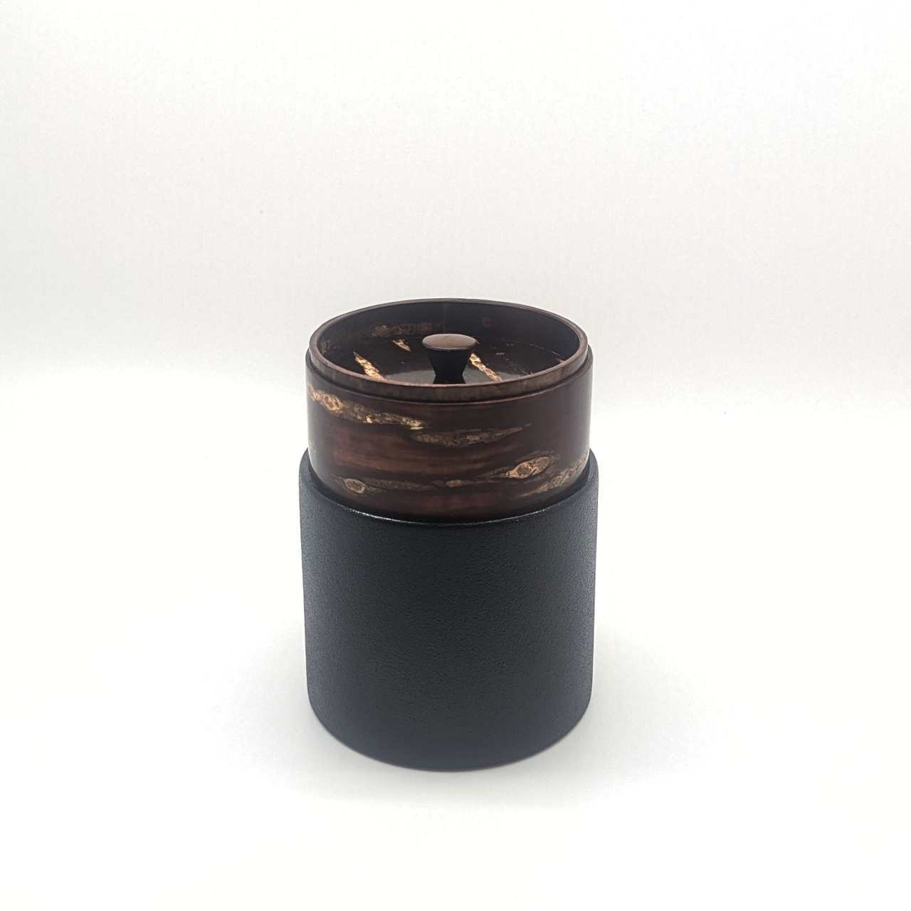 川連塗漆芸家の攝津広紀氏と角館伝四郎のコラボレーションの茶筒です。