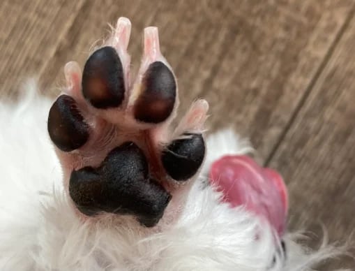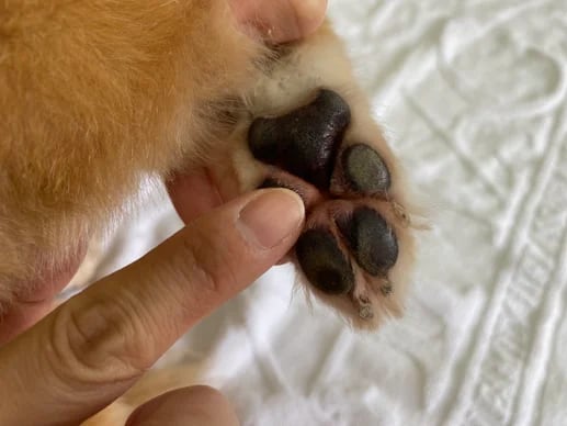 その後、犬の前足と後ろ足の裏にある、一番大きな肉球の手前のくぼみを、人の親指(小型犬は人差し指や綿棒でもOK)で3秒かけてゆっくり押し、3秒保ってから、3秒かけて力を抜きます。これを5回ほど行いましょう。