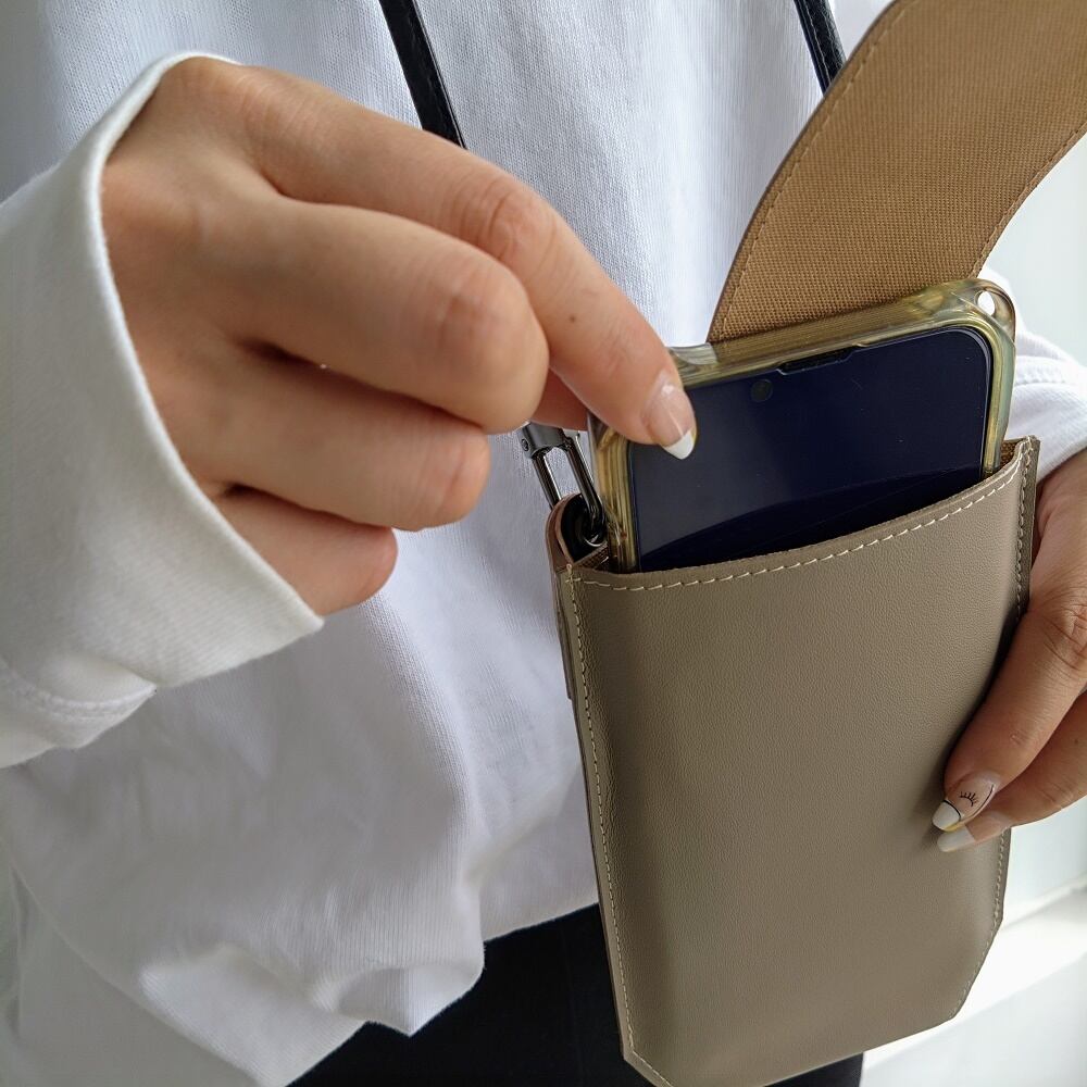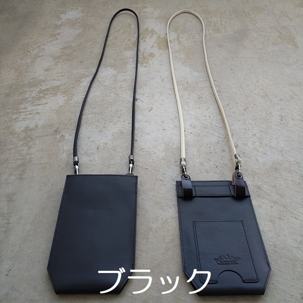 シンプルで機能的な、レザーのスマホショルダー