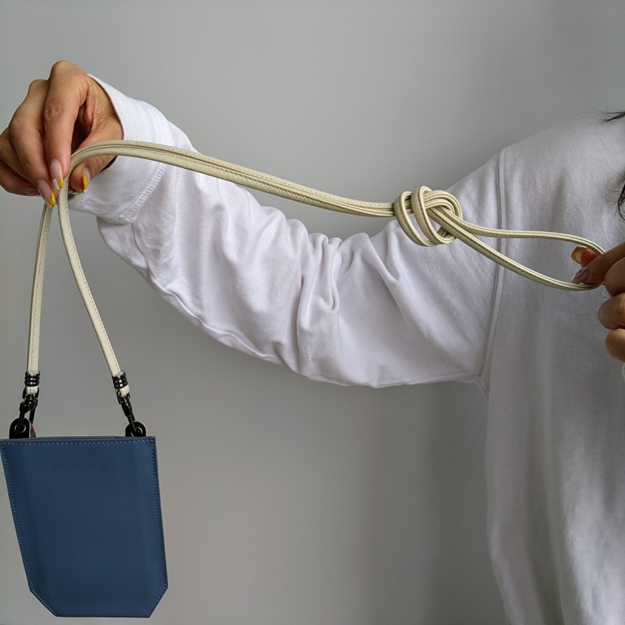*本品はスマートフォン専用のミニバッグとして設計しました。底マチ部分は空洞になっている為、小さいモノ・細いモノの収納はお控えください。